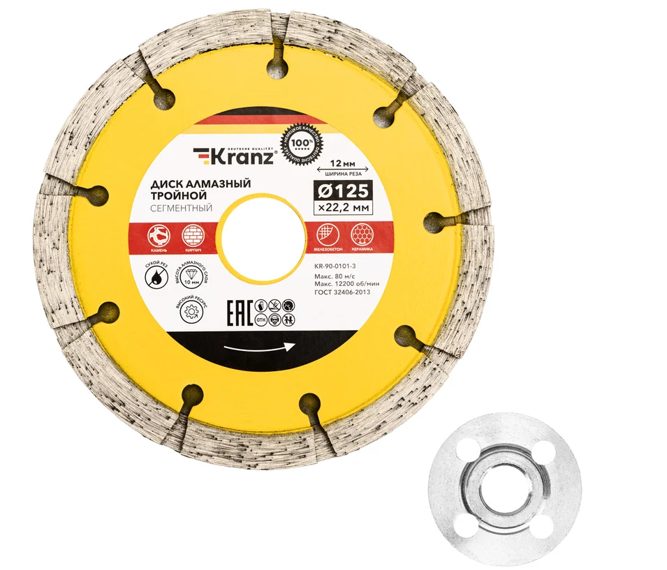 Алмазный диск с уникальной тройной формой используется для штробления различных материалов и прокладки большинства типов кабелей. Диск эффективно справляется с природным и искусственным камнем, армированным и неармированным бетоном, кирпичом, керамикой и керамогранитом. Сочетание высококачественного алмазного покрытия и прочной стальной конструкции гарантирует долгий срок службы. Сегментированная форма диска обеспечивает максимально быстрый процесс резки, а система воздушного охлаждения помогает поддерживать оптимальные условия работы.