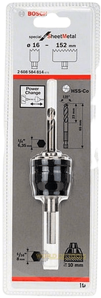 Переходник Power Change с шестигранным хвостовиком для патрона 8 мм с центрирующим сверлом HSS-Co. Для коронок O 16-152 мм линейки Bosch Sheet Metal.