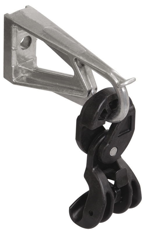 Промежуточные поддерживающие зажимы предназначены для крепления изолированной несущей нейтрали СИП до 1 кВ. Нейтраль фиксируется регулируемым зажимом. Подвижное соединение позволяет зажиму двигаться в продольном и поперечном направлениях. Комплект промежуточной подвески КОПМ 1500 представляет собой кронштейн с выступом в верхней части, не позволяющий зажиму перейти в верхнее положение. Кронштейн имеет отверстие для его крепления к опоре с помощью анкерных винтов, также предусмотрена возможность крепления кронштейна к столбам с помощью бандажной ленты. Для облегчения процесса монтажа ленты кронштейн снабжен разделительными фасками. КОПМ 1500 выполнен из устойчивого к действию коррозии алюминиевого сплава в сборе с поставляемым отдельно промежуточным зажимом ЗПН 1500, изготовленным из полимера, укрепленного стекловолоконной структурой, устойчивого к ультрафиолетовому излучению и погодно-климатическим условиям.