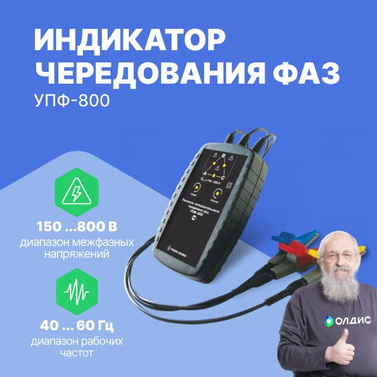 УПФ-800 необходим для того, чтобы специализированный работник смог определить последовательность чередования фаз и соотношение межфазных напряжений в трехфазной цепи.