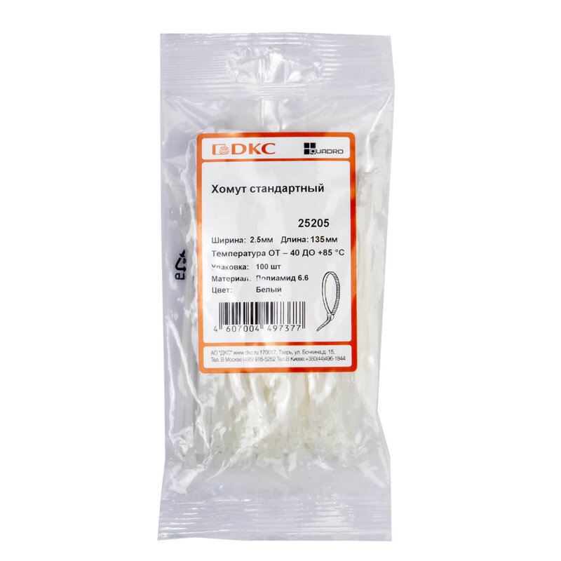 Хомут кабельный 7.8х300 полиамид бел. (уп.100шт) DKC