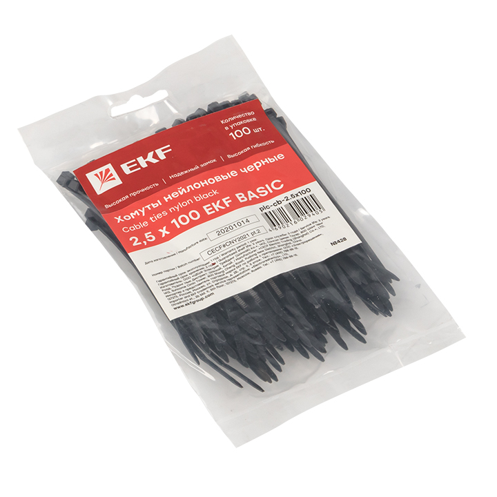 Хомут нейлоновый черный (2,5x100) (100шт.) EKF Basic