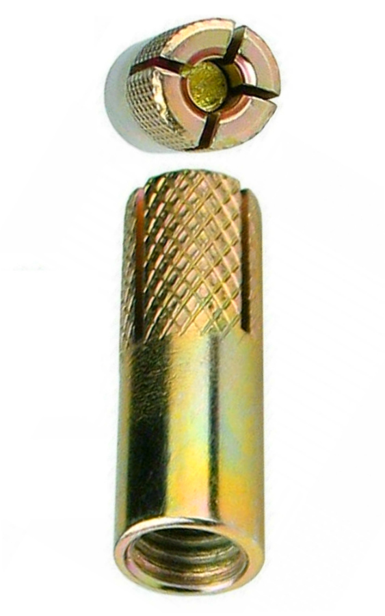 Анкер используется при ответственном монтаже (при больших нагрузках), при креплении тяжеловесных конструкций, консолей, кабельных трасс, ворот к бетону, естественному камню, полнотелому кирпичу. Комбинируется с болтом или шпилькой с метрической резьбой. Простой и быстрый монтаж.