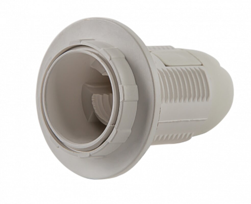/ Каталог / Светотехника / Управление освещением и комплектующие / Патроны и переходники / Патрон Е27-ППК пластиковый с прижимным кольцом IN HOME
