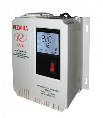 Стабилизатор напряжения серии LUX РЕСАНТА АСН-1000Н/1-Ц релейного типа предназначен для выравнивания входного напряжения и защиты приборов от перепадов напряжения с суммарной мощностью до 1 кВт. Работает с напряжением 220В с точностью до +/-8%. Устройство оснащено фильтрами сетевых помех, предотвращающими искажение частотной синусоиды, микропроцессорным управлением и цифровым индикатором напряжения, на котором отображаются параметры напряжения. Превышение пределов поддерживаемого входного напряжения автоматически отключает подачу питания. Прочный корпус защищает внутренние узлы аппарата от повреждений. Данный стабилизатор может обеспечивать стабильным питанием - телевизор, ресивер, DVD проигрыватель, кассовый аппарат, газовый котел.