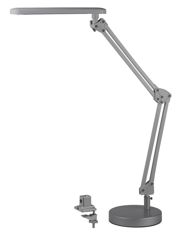 Светильник со светодиодами (LED) в качестве источников света, которые экономят до 90% электроэнергии и не требуют замены на протяжении всего срока службы светильника.Два варианта крепления в комплекте: основание, струбцинаВыключатель на панели со светодиодами.Высота плафона регулируется двухсекционной сгибающейся стойкой, направление света регулируется поворотом плафона в любом направлении.Теплый свет, аналогичный свету лампы накаливания - цветовая температура 3000К.