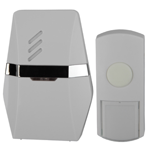 / Каталог / Электроустановочные изделия / Звонки / Звонок дверной ЭРА C81 беспроводной белый с серебристым 25 мелодий
