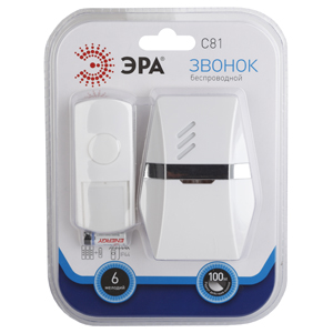 Звонок дверной ЭРА C81 беспроводной белый с серебристым 25 мелодий