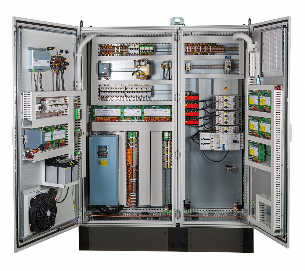 Современные шкафы управления широко применяются в самых разнообразных системах (отопления, освещения, вентиляции и прочее), ведь они являются базовой единицей, оптимизирующей рабочий цикл технологических объектов промышленных систем. Функционирование такого щита основано на автоматическом анализе полученных данных о параметрах и производительности управляющих сигналов. Кроме того, щиты управления наделены способностью защитить аппараты от перегрузок и прочих непредвиденных и опасных ситуаций, посредством управления системой пожаротушения, видеонаблюдения и иными технологическими процессами.